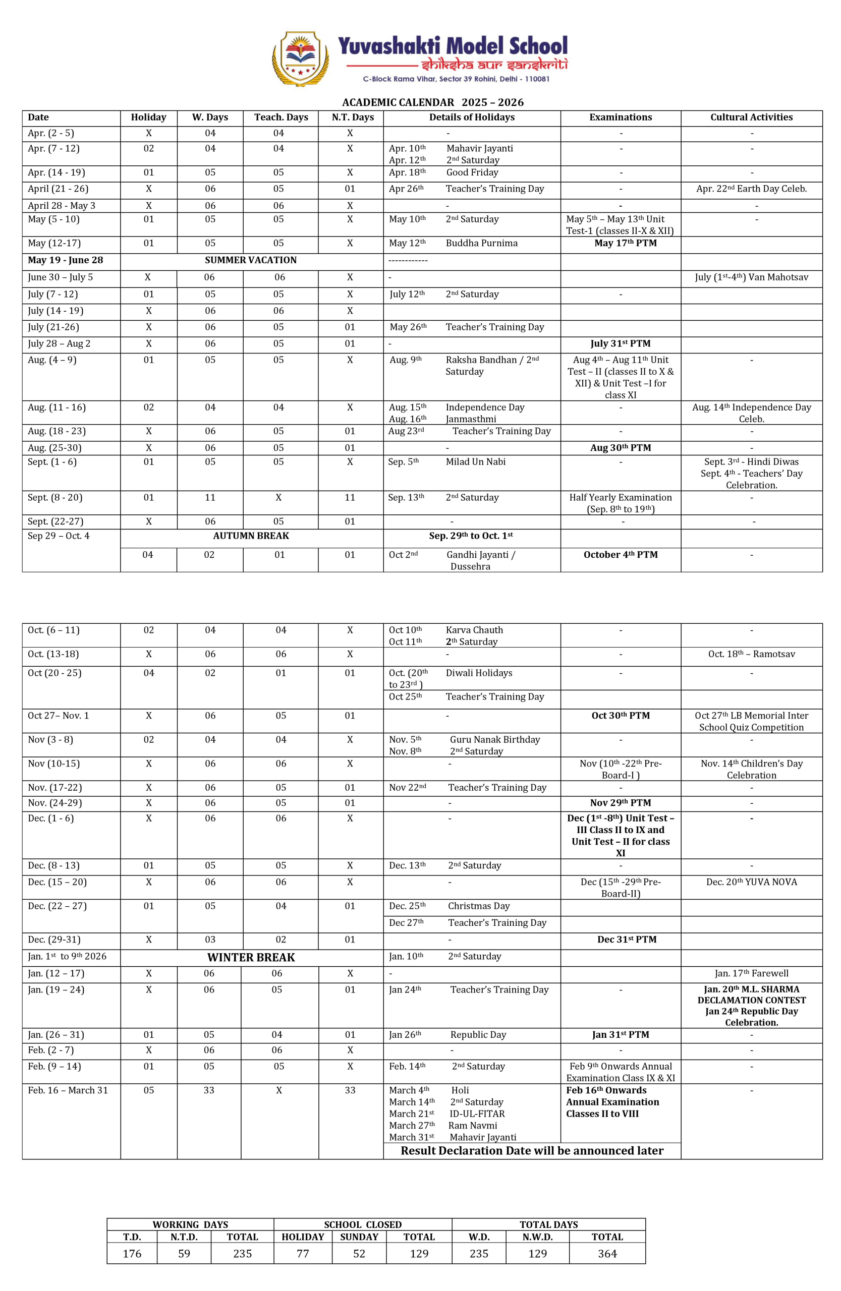 Academic Calendar